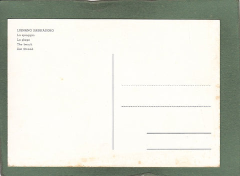 AK Lignano Sabbiadoro. La spiaggia. Ungelaufen. Großformat. Zustand: gut, leichte Läsuren an Ecken.