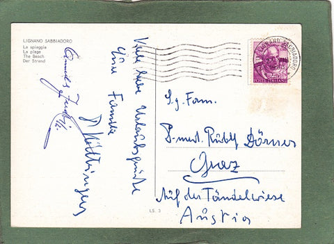 AK Lignano Sabbiadoro. La spiaggia. Gelaufen 1963. Großformat. Nummeriert: LS 3. Zustand: gut.
