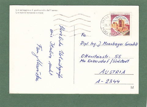 AK Lignano Sabbiadoro. La spiaggia e il porticciolo dell'aereo. La nuova terrazza a mare. Gelaufen 1983 in Lignano Sabbiadoro. Großformat. Zustand: linke Ecken angeknickt, Ecken leicht angestoßen, sonst O.k.