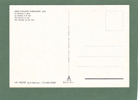 AK Lignano Sabbiadoro. La terrazza a mare. Ungelaufen. Großformat. Verlag: P. Mattiussi. Nummeriert: 184/533. Zustand: gut.