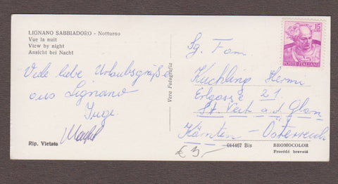 AK Lignano Sabbiadoro - Notturno. Ungelaufen, aber beschrieben. Extrakleinformat. Nummeriert: 014467 Bis. Zustand: gut.