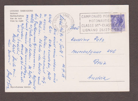 AK Lignano Sabbiadoro. Notturno. Gelaufen 1969. Großformat. Zustand: leichte Kratzer, Ecken wenig angestoßen.