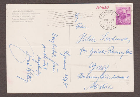 AK Lignano Sabbiadoro. Notturno in Piazza della fontana. Gelaufen 1965. Großformat. Zustand: gut, geringe Läsuren.
