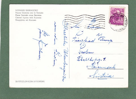 AK Lignano Sabbiadoro. Piazza Centrale con la Fontana. Gelaufen 196? in Lignano Sabbiadoro. Großformat. Zustand: Ecken angeknickt, sonst O.k.