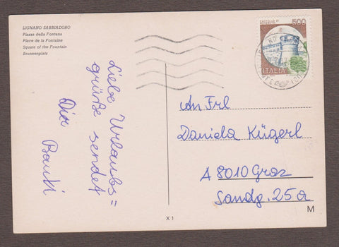 AK Lignano Sabbiadoro. Piazza della Fontana. Gelaufen 1987. Großformat. Nummeriert: X1. Zustand: gut.