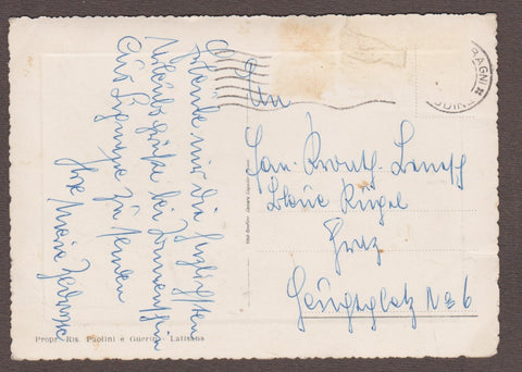 AK Lignano Sabbiadoro - Pineta. Gelaufen, aber Briefmarke wurde entfernt. Großformat. Verlag: Paolini e Guerin. Zustand: stark bestoßen.