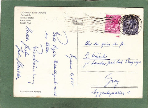 AK Lignano Sabbiadoro. Porticciolo. Gelaufen 1965. Großformat. Zustand: Ecken etwas angeknickt bzw.angestoßen, sonst nur leichte Randläsuren.