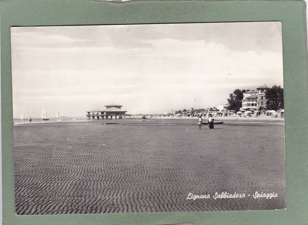AK Lignano Sabbiadoro – Spiaggia. Gelaufen, aber Briefmarke wurde entfernt. Großformat. Cigaina. Zustand: rechte Ecken wenig angeknickt, leicht verzogen.