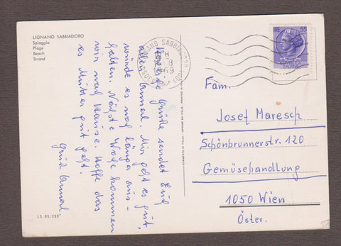 AK Lignano Sabbiadoro. Spiaggia. Gelaufen 1969. Großformat. Nummeriert: LS 95/290. Zustand: linke Ecken geknickt, leichte Knicke über der Bildmitte.