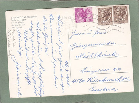 AK Lignano Sabbiadoro. Sulla Spiaggia. Gelaufen 1968. Großformat. Gut, leichte Randläsuren.