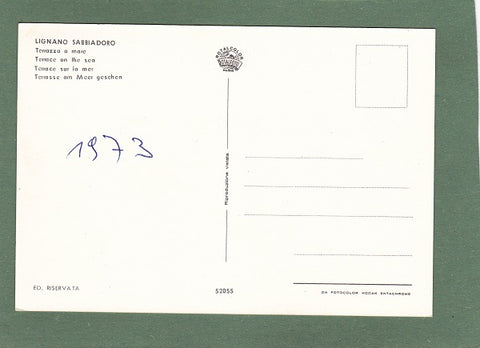AK Lignano Sabbiadoro. Terrazza a mare. Ungelaufen. Datum vermerkt 1973. Großformat. Verlag: Rotalfoto Milano. Nummeriert: 52055. Zustand: gut.