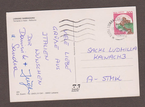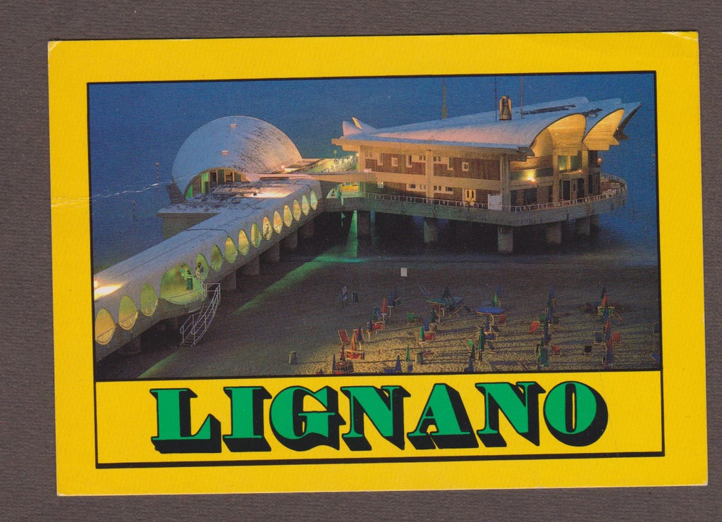 AK Lignano Sabbiadoro. Terrazza e mare - Notturno.  Gelaufen. Großformat. Verlag: Guerin. Nummeriert: 424. Zustand: Knick über dem linken oberen Eck, rechtes oberes Eck geknickt.