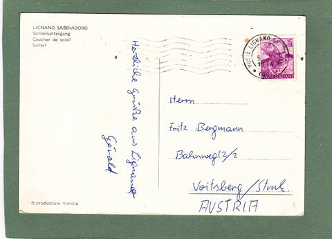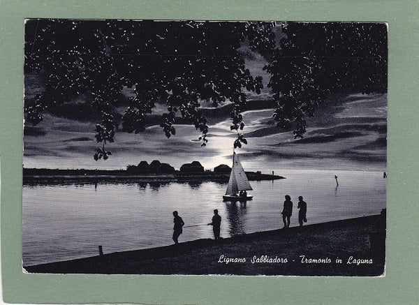 AK Lignano Sabbiadoro – Tramonto in Laguna. Gelaufen 1964 in Lignano Sabbiadoro. Großformat. Zustand: linkes oberes Eck geknickt, Ecken und am Rand bestoßen.