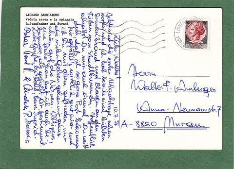 AK Lignano Sabbiadoro. Veduta aerea e la spiaggia. Gelaufen 1977 in Lignano Sabbiadoro. Großformat. Nummeriert: 17. Zustand: Ecken etwas bestoßen, Knick am oberen Rand etwas links vom rechten Eck, sonst O.k.