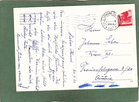 AK Lignano Sabbiadoro. Viale al mare. Gelaufen 1964. Großformat. Nummeriert: 522. Zustand: leichter Knick über dem linken unteren Eck.