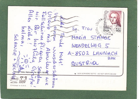 AK Lignano Souvenir. Gelaufen 1999 in Lignano Sabbiadoro. Großformat. Verlag: Mattiussi. Nummeriert: 325. Zustand: Ecken etwas angeknickt, sonst leichte Läsuren.