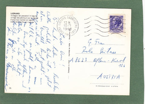 AK Lignano. Villaggio dei pescatori in laguna. Gelaufen 1969 in Lignano Sabbiadoro. Großformat. Nummeriert: 35. Zustand: Schriftzug Lignano 1969 rechts unten aufgeklebt, Ecken wenig angestoßen, am linken Rand oben etwas bestoßen.