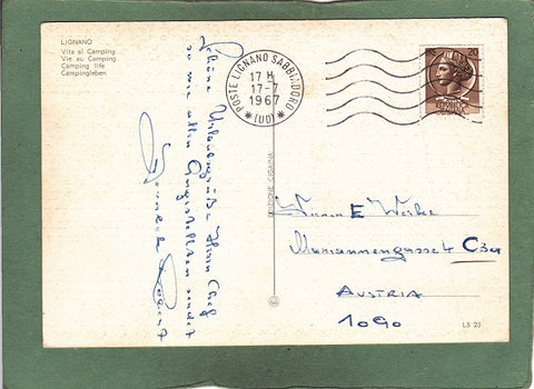 AK Lignano. Vita al Camping. Gelaufen 1967. Großformat. Verlag: Cigaina. Nummeriert: LS 23. Zustand: gut, linkes oberes Eck angeknickt.