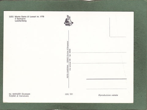 AK Monte Santo di Lussari. Il Santuario. Ungelaufen. Großformat. Verlag: Baruzzi. Foto Ghedina. Nummeriert: 233/231. Zustand: gut, rechtes unteres Eck angeknickt.