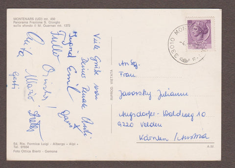 AK Montenars. Panorama Frazione S. Giorgio sullo sfondo il M. Quarnan.Gelaufen. Großformat. Verlag: Formica Luigi. Zustand: Knick über der rechten Bildhälfte.