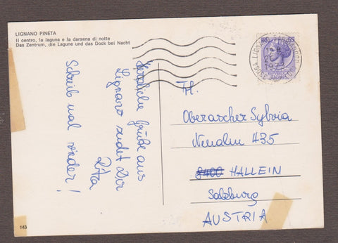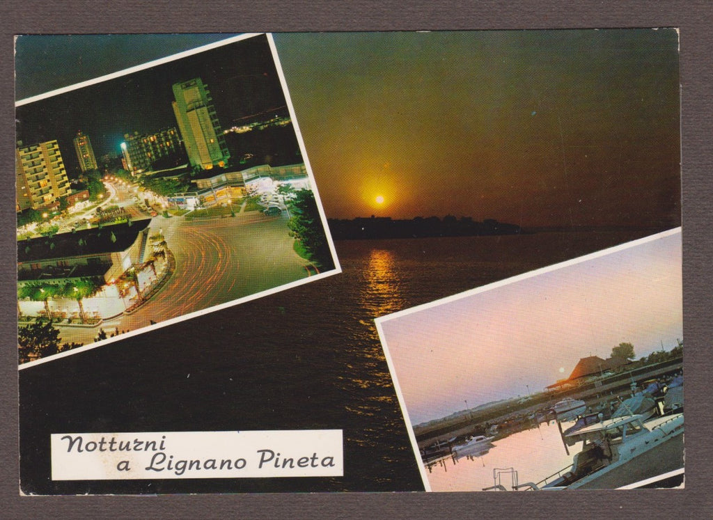 AK Notturni a Lignano Pineta. Gelaufen 1973. Großformat. Nummeriert: 143. Zustand: leichte Randläsuren, Klebestreifenreste auf Rückseite.