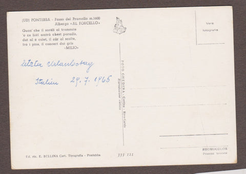 AK Pontebba - Passo del Pramollo Albergo Al Forcello. Ungelaufen. Großformat. Verlag: Bellina bzw. Foto Ghedina. Nummeriert: 333 111. Zustand: gut, Ecken wenig angestoßen.