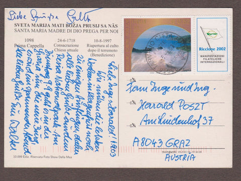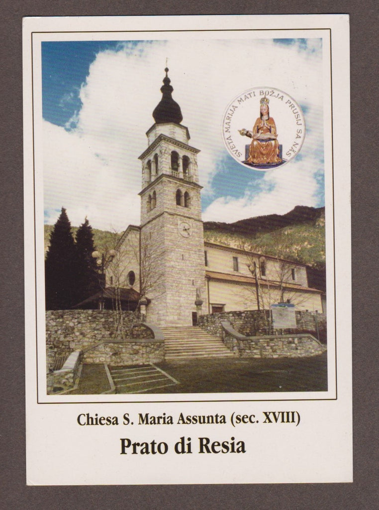 AK Prato di Resia. Chiesa S. Maria Assunta (sec. XVIII) Gelaufen 2003. Großformat. Verlag: Della Mea. Nummeriert: 10.099. Zustand: gut, rechtes oberes Eck geknickt.