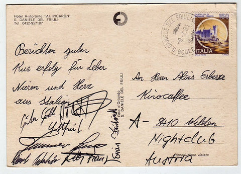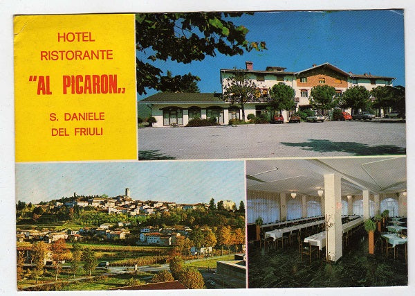 AK S. Daniele del Friuli. Hotel Al Picaron. Gelaufen 1981 in San Daniele. Großformat. Verlag: Foto d'Orlando del Friuli. Zustand: linkes oberes Eck geknickt, oberer Rand bestoßen, rechtes oberes Eck angeknickt, sonst leichte Läsuren.