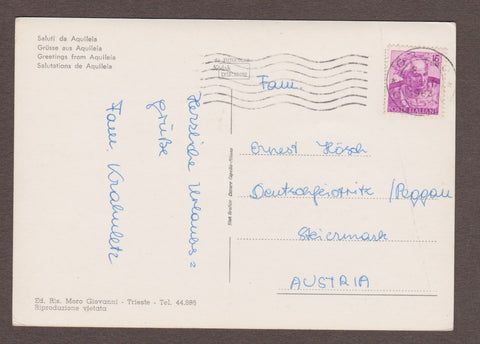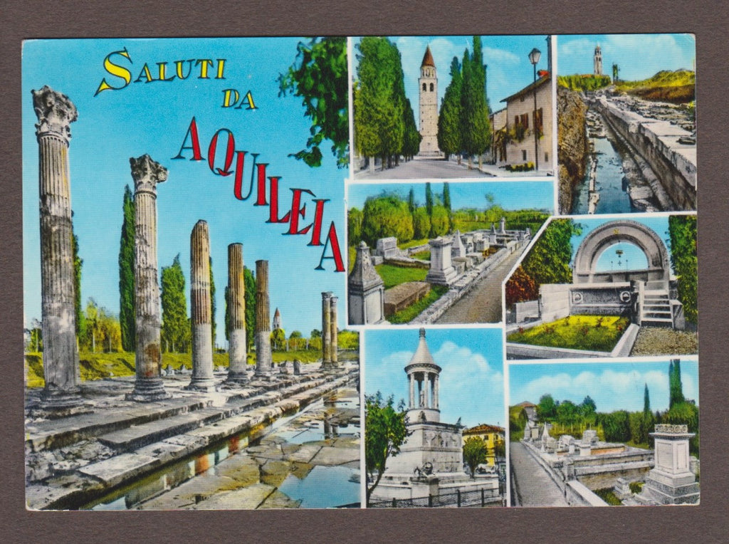 AK Saluti da Aquileia. Gelaufen 1963. Großformat. Verlag: Moro Giovanni. Zustand: gut, rechtes unteres Eck wenig angeknickt.