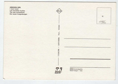 AK Saluti da Aquileia. I nuovi scavi. Ungelaufen. Großformat. Jahr 1986 auf Rückseite vermerkt. Verlag: Cigaina – Latisana. Nummeriert: 12. Zustand: gut.