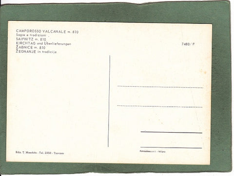 AK Saluti da Camporosso Valcanale. Sagre e tradizioni. Ungelaufen. Großformat. Verlag: Moschitz. Nummeriert: 7480/F. Zustand: gut.