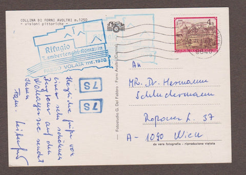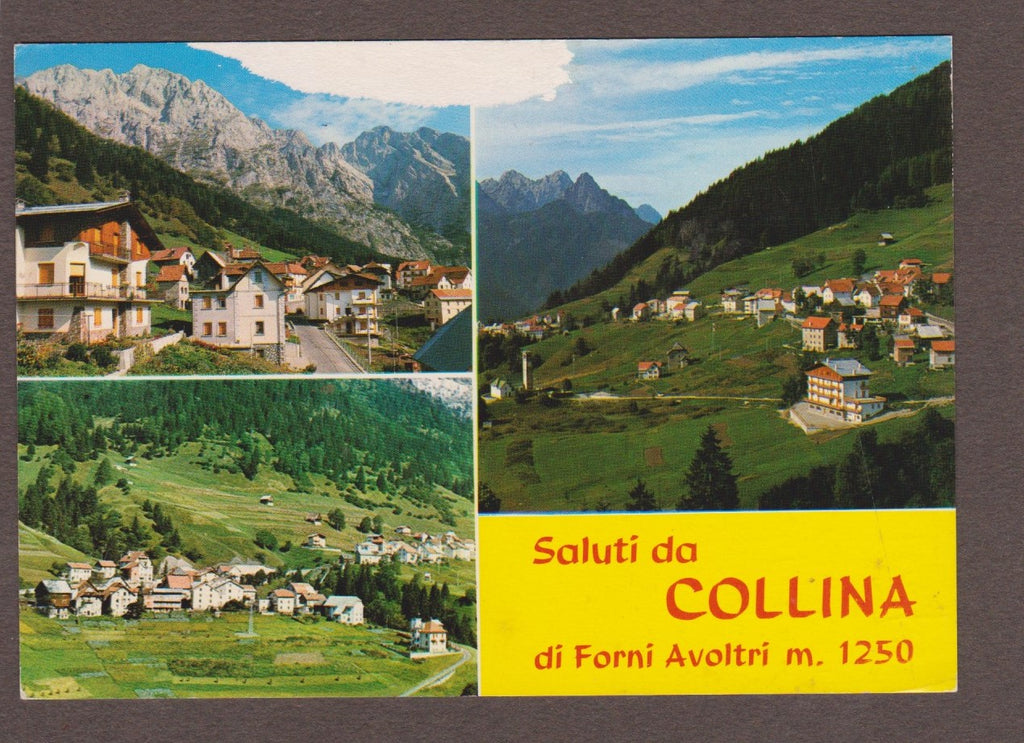 AK Saluti da Collina di Forni Avoltri. Gelaufen. Großformat. Verlag: Del Fabbro. Zustand: am oberen Rand stark bestoßen.
