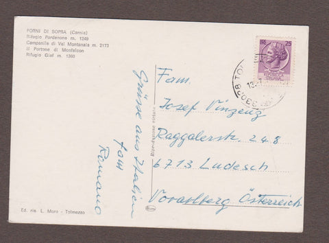 AK Saluti da Forni di Sopra. Gelaufen. Großformat. Verlag: Moro. Zustand: Steckalbumdruckspuren an Ecken, rechtes oberes Eck geknickt.