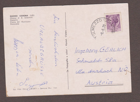 AK Saluti da Gemona del Friuli. Gelaufen 1970. Großformat. Verlag: Bierti. Zustand: stärker bestoßen.