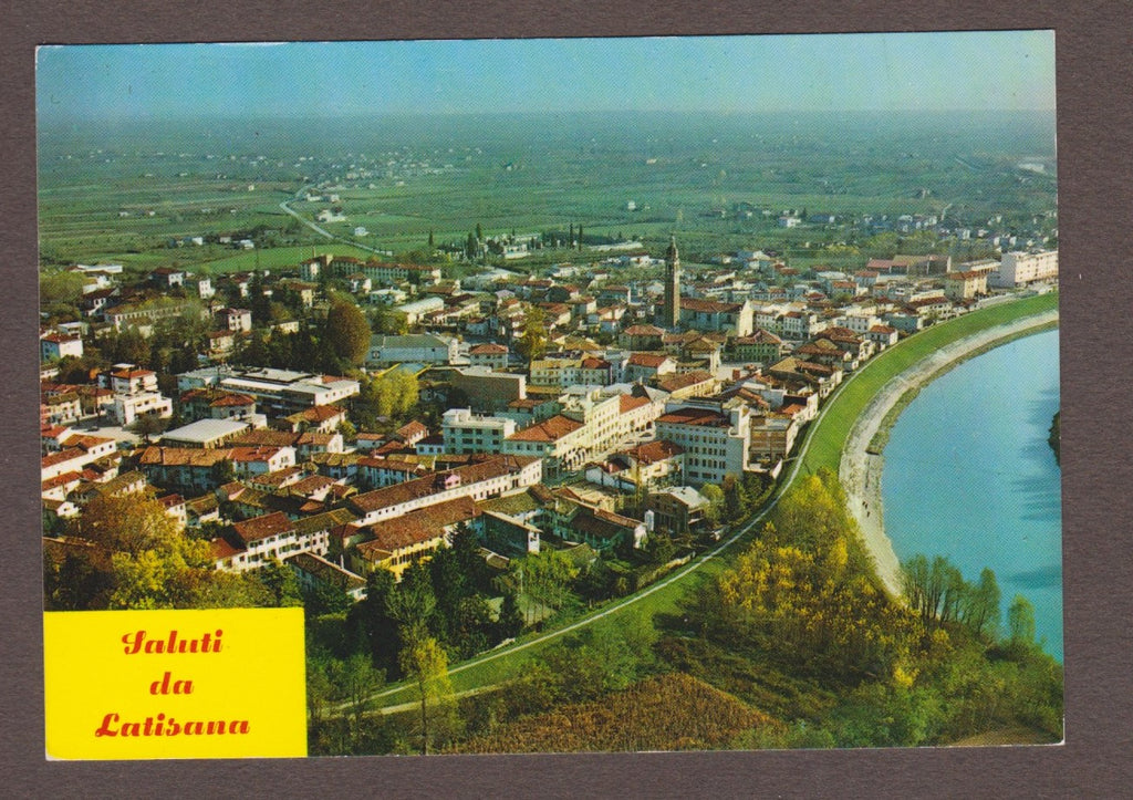 AK Saluti da Latisana. Panorama aereo. Ungelaufen. Großformat. Verlag: Cigaina. Nummeriert: 18. Zustand: gut, geringe Läsuren.