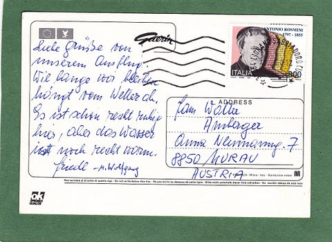 AK Saluti da Lignano. Gelaufen 1998 in Lignano Sabbiadoro. Großformat. Verlag: KINA ITALIA Milano. Zustand: obere Ecken angeknickt, untere Ecken (linkes doppelt) geknickt, Knick in der rechten unteren Hälfte, Knick am unteren Rand etwas rechts vom linken Eck.