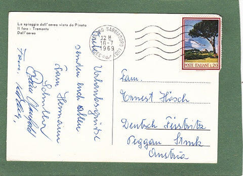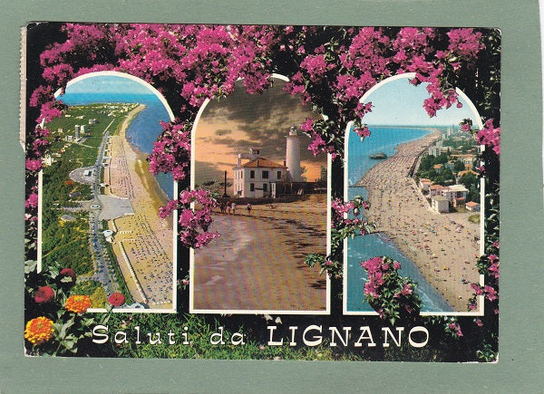 AK Saluti da Lignano. Gelaufen 1969 in Lignano Sabbiadoro. Großformat. Zustand: Ecken geknickt.