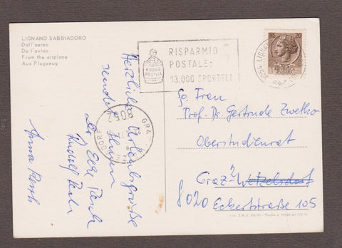 AK Saluti da Lignano. Gelaufen. Großformat. Zustand: linkes unteres Eck doppelt geknickt, obere Ecken angeknickt.