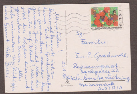AK Saluti da Lignano. Gelaufen 1980. Großformat. Nummeriert: LIG 221. Zustand: Ecken wenig angeknickt.