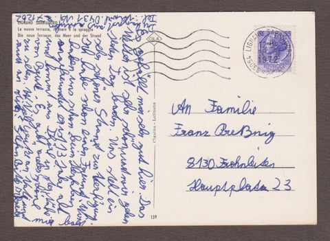 AK Saluti da Lignano. Gelaufen 1972. Großformat. Verlag: Cigaina. Nummeriert: 139. Zustand: Ecken und Rand etwas bestoßen, Kugelschreibermarkierung in Bildmitte.