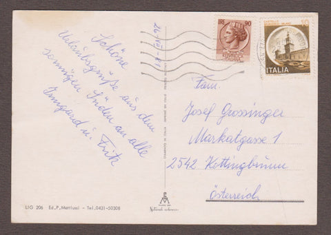 AK Saluti da Lignano. Gelaufen. Großformat. Verlag: Mattiussi. Nummeriert: LIG 206. Zustand: Knicke über der oberen Hälfte.