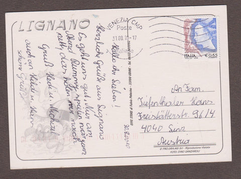 AK Saluti da Lignano. Gelaufen 2010. Großformat. Verlag: Effe Store. Zustand: linke Ecken angeknickt, sonst O.k.