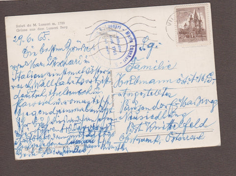 AK Saluti da M. Lussari. Gelaufen 1965. Großformat. Verlag: Moschitz. Zustand: gut, leichter Knick am unteren Rand in der rechten Hälfte, leichte Randläsuren.