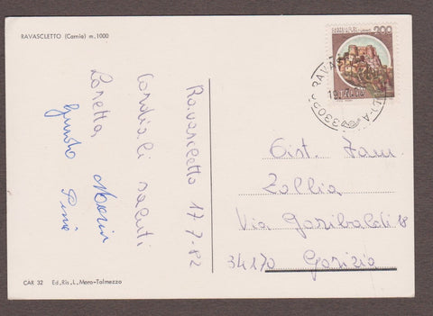 AK Saluti da Ravascletto. Gelaufen 1982. Großformat. Verlag: Moro. Nummeriert: 32. Zustand: obere Ecken angeknickt, sonst O.k.