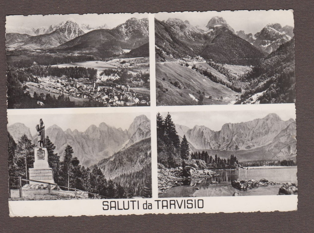 AK Saluti da Tarvisio. Gelaufen, aber Briefmarke wurde entfernt. Großformat. Verlag: Florian. Nummeriert: 4x. Zustand: Ecken leicht angestoßen, Rückseite fleckig.