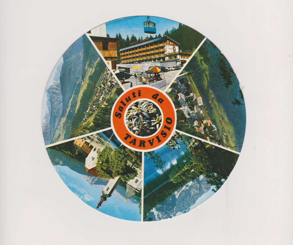 AK Saluti da Tarvisio. Gelaufen. Sonderformat: Rund: Dm: ca. 15cm. Verlag: Moschitz. Zustand: Knick im linken oberen Bild, sonst O.k.