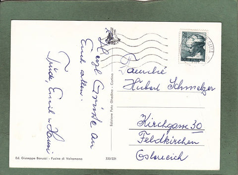 AK Saluti da Tarvisio. Gelaufen 1966. Großformat. Verlag: Baruzzi. Foto Ghedina. Nummeriert: 333/221. Zustand: linkes unteres Eck angeknickt, leichte Randläsuren.