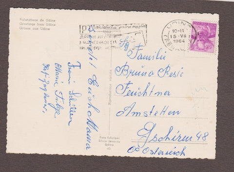 AK Saluti da Udine. Gelaufen 1964. Großformat. Verlag: Janovitz. Nummeriert: 45. Zustand: gut, linkes oberes Eck angeknickt.