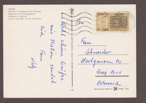 AK Saluti da Udine. Gelaufen. Großformat. Verlag: Cartolnova. Nummeriert: 106. Zustand:Ecken geknickt bzw. angeknickt.