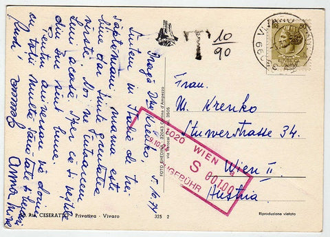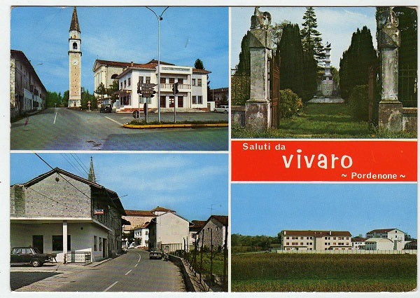 AK Saluti da Vivaro. Gelaufen 1974 in Vivaro. Großformat. Verlag: Ceseratto Vivaro. Nummeriert: 325 2. Zustand: stärker bestoßen, rechtes unteres Eck leicht geknickt, an Rändern und Ecken leicht angestoßen, Stempeldrucklinie (oder Drucklinie durch einen anderen Gegenstand verursacht) vom linken unteren zum rechten oberen Eck,